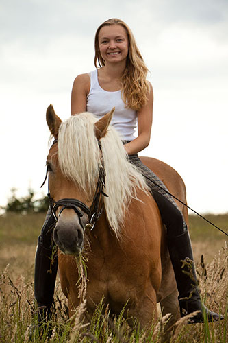 Am Wochenende haben wir ganz spontan ein paar Fotos von Marlenchen gemacht, wobei sie sich mehr für die Kamera als für's Longieren interessiert hat: